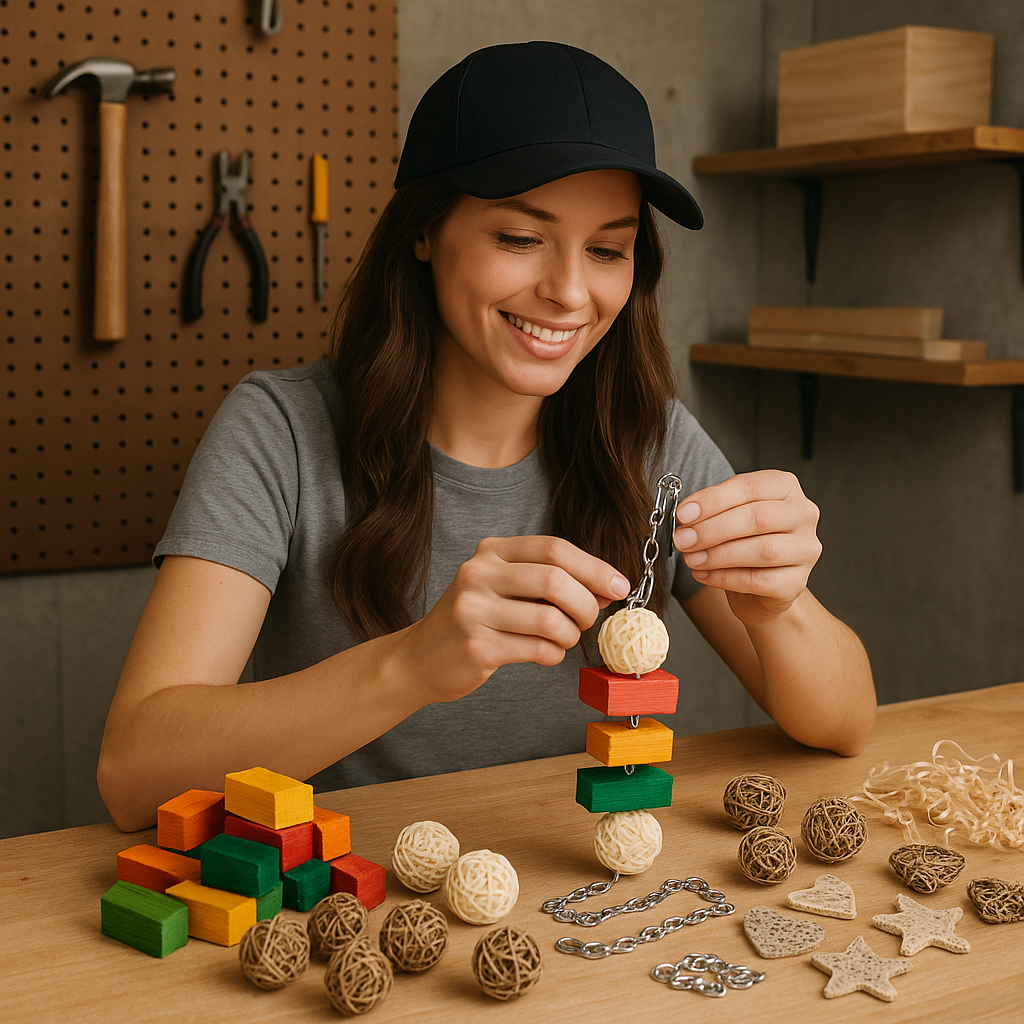 At Impeckable Bird Toys, we take pride in handcrafting high-quality, safe, and engaging toys for birds of all sizes. Every toy we create is thoughtfully designed and assembled in our Florida workshop, ensuring the highest standards of craftsmanship, durability, and enrichment for your feathered companions.