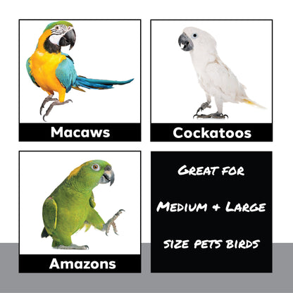 * Great for medium to large birds like African Greys, Amazons, Cockatoos