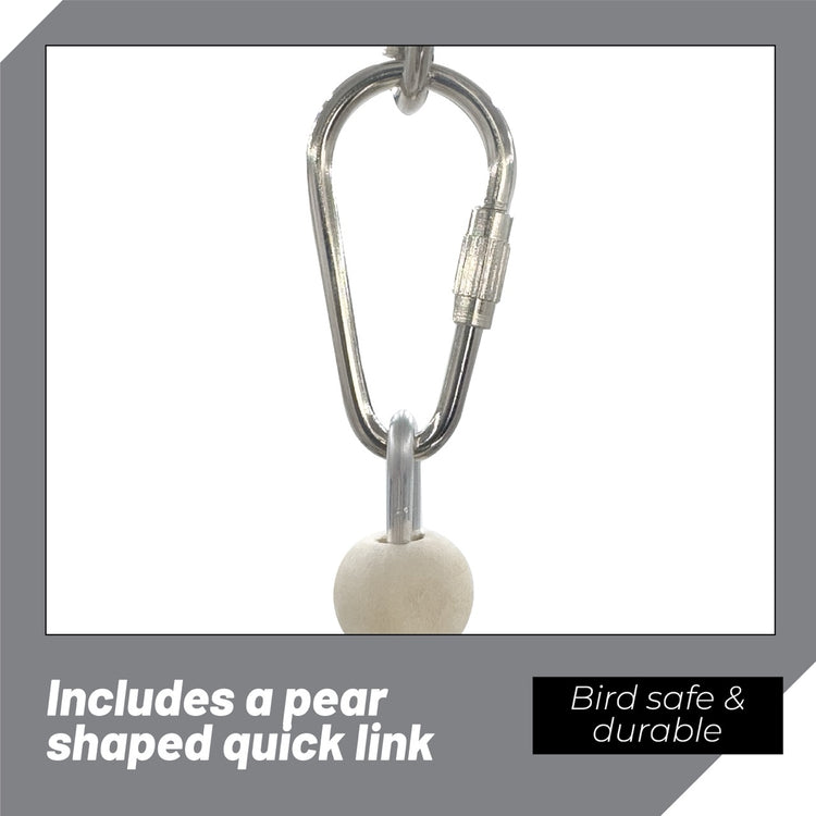 These toys are designed to hung from a bar or rung in a birds cage. Each medium bird cage toy includes at least one quick link hanging connector for fast installation in the aviary.