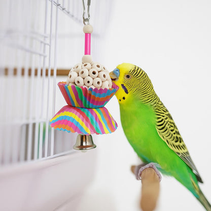 The 1925 Small Sola Cake features vibrant, bakery-grade cupcake cups, adding a playful and colorful element to your bird’s toy collection. Made from lightweight, thin paper, these cups are perfect for even the smallest, most delicate beaks and feet to shred and explore. Hidden beneath the layers is an exciting surprise—a natural wood bead, a cardboard shred, and a ringing metal bell, offering multiple textures and interactive fun. Designed to encourage foraging, chewing, and shredding behaviors, this toy keeps birds active, engaged, and mentally stimulated.
