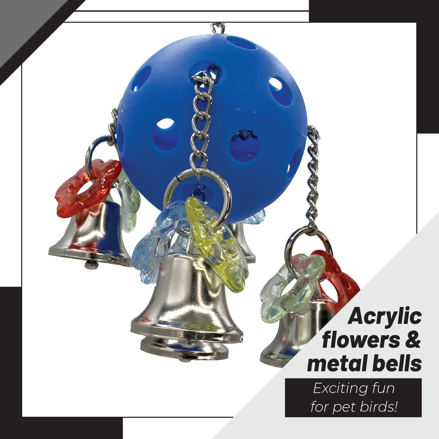 The bells create cheerful sound with every swing, and the acrylic flowers provide fun textures and light reflection for added interest. The toy moves freely when nudged, encouraging birds to pull, shake, and investigate from multiple angles.