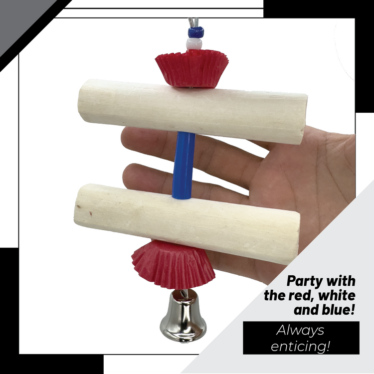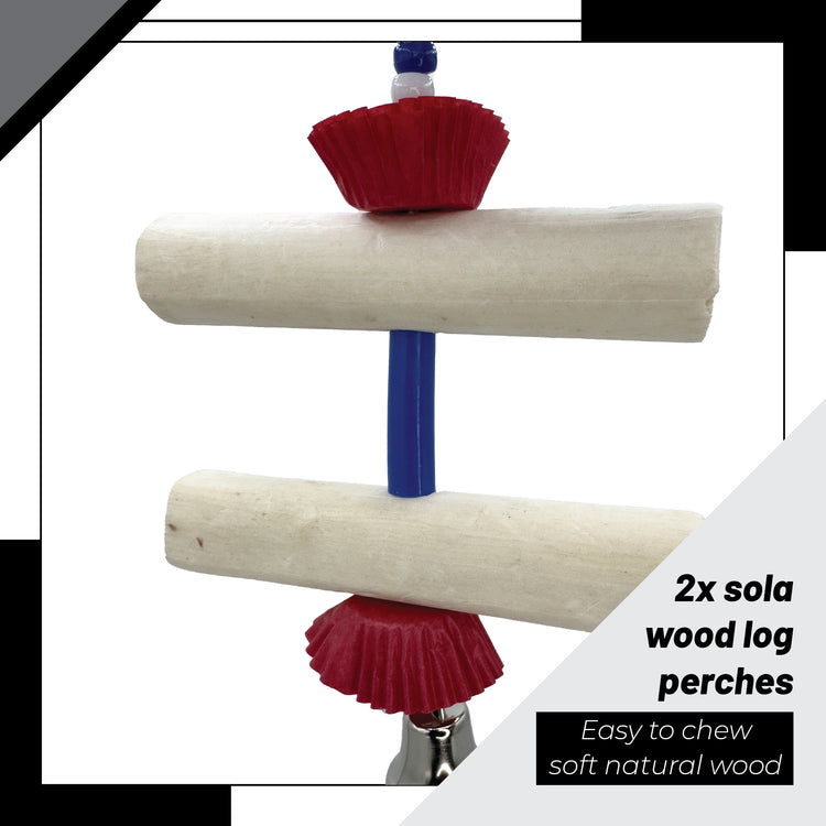 Introducing the 1943 Small USA Sola Percher from Impeckable Bird Toys. This charming toy is designed for the active needs of small pet birds who enjoy lightweight textures, chewing, and playful movement.