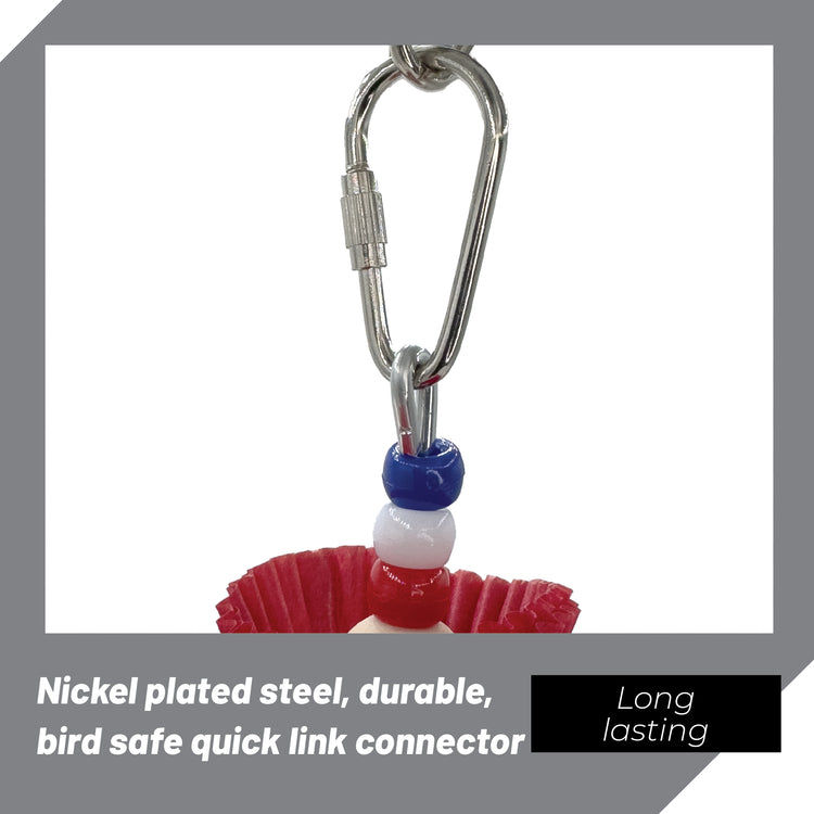 The 1943 Small USA Sola Percher is designed for simple and secure installation in any bird cage setup. Featuring a durable metal quick-link connector, this toy attaches in seconds and stays firmly in place during play. Whether your bird is perched, chewing, or exploring the toy’s fun textures, the sturdy connection prevents shifting or falling. The dependable quick link adds both safety and convenience—ideal for busy bird owners and active birds alike. With its easy setup and reliable hold, the Small USA Sola Percher becomes a stable, enriching addition to your pet’s daily environment.