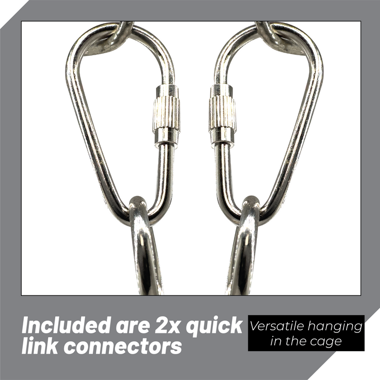 The 1969 Spoon Pacifier Shine features two sturdy quick-link connectors, providing flexible and secure cage attachment. These durable, bird-safe links allow for easy installation in multiple orientations, ensuring the toy stays firmly in place while your bird enjoys interactive play. Whether positioned vertically or horizontally, these connectors offer stability and versatility, making it easy to customize your bird’s environment. Designed for safe and engaging fun, this toy encourages chewing, tugging, and exploration, keeping birds mentally stimulated and physically active.