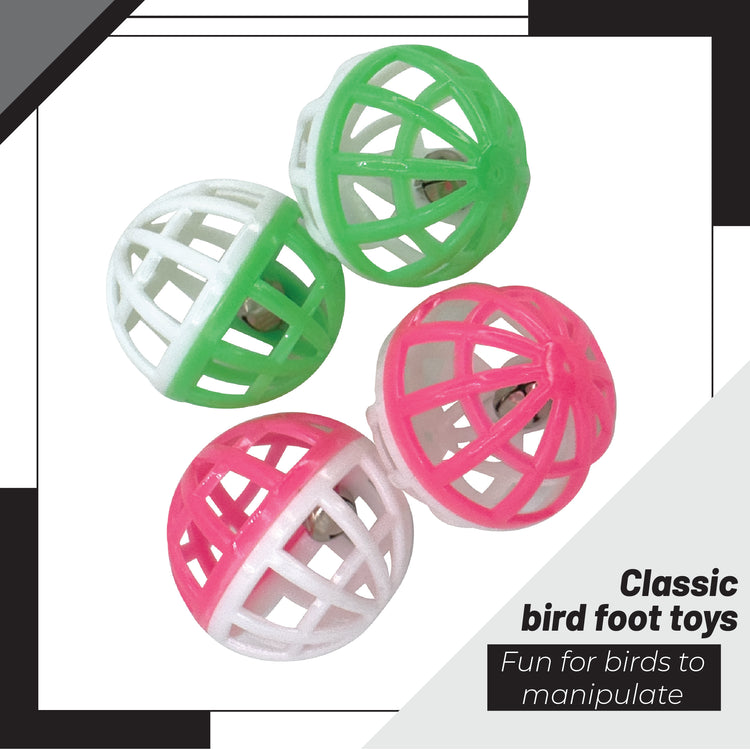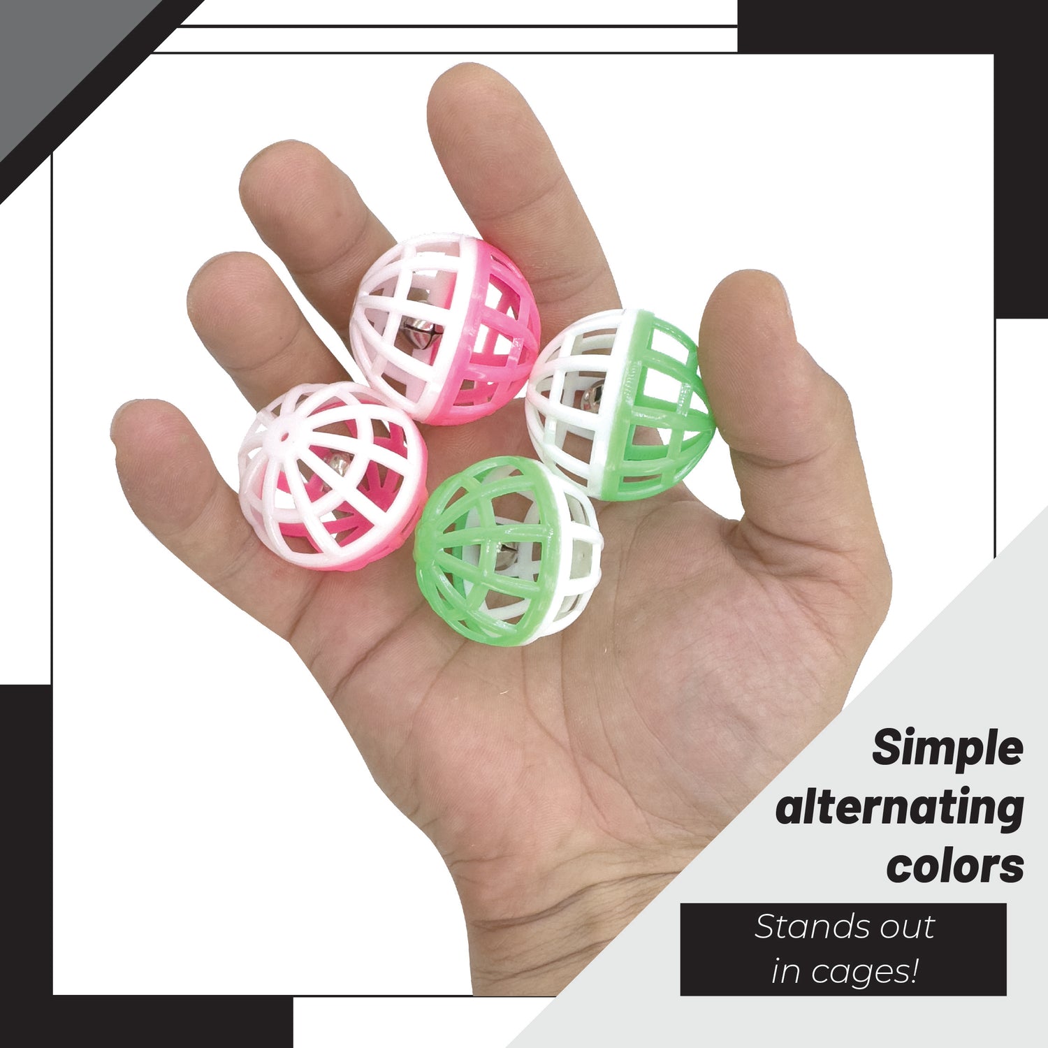Each ball measures 1.5 inches in diameter and is crafted with an open-cage design, allowing birds to easily grip them with their beaks or feet. Inside each ball is a small bell that produces a soft rattling sound when the toy moves. This gentle sound draws birds in and encourages them to chase, roll, or toss the ball during play.