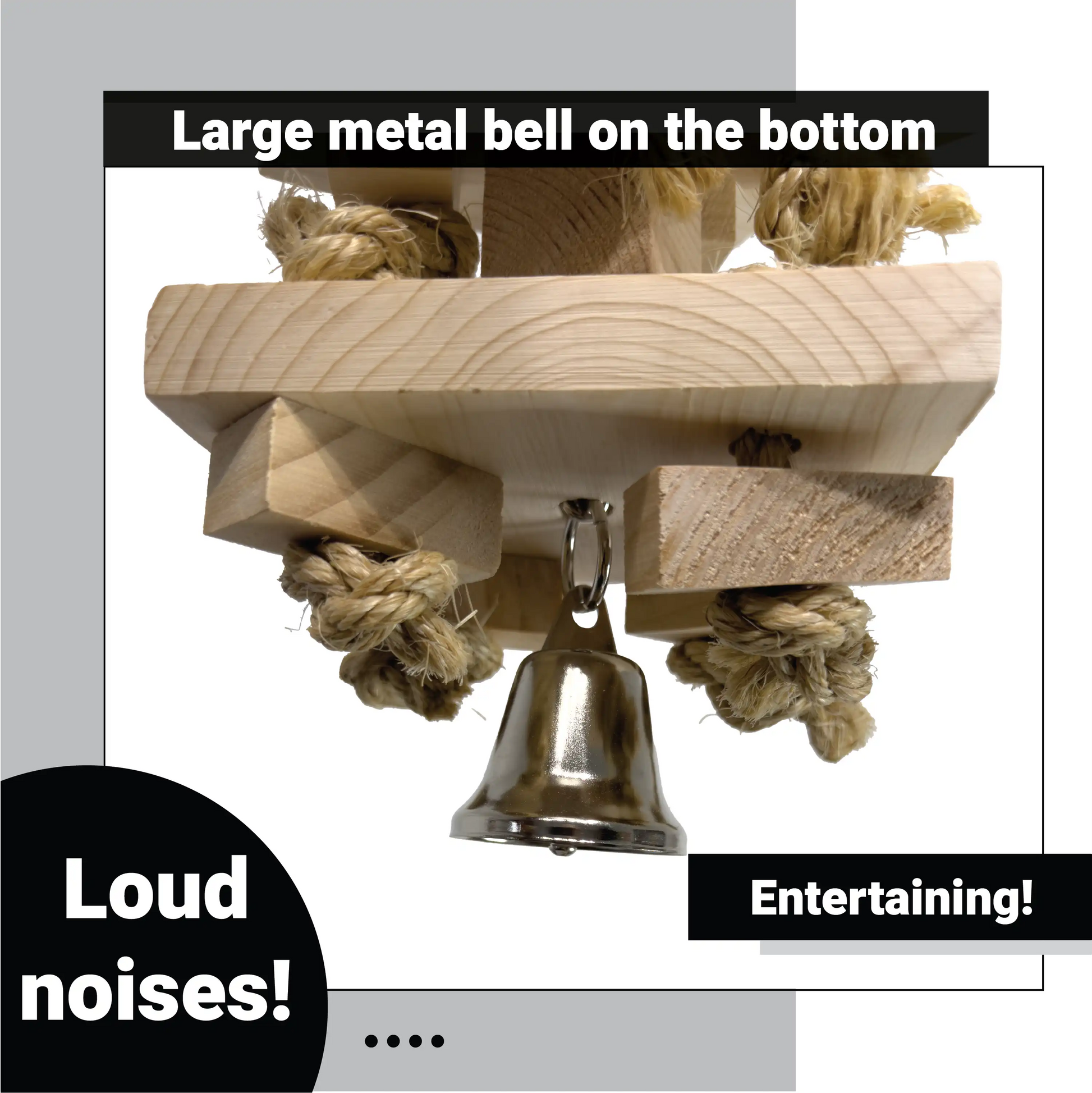 Every element of this design provides stimulation—visual, tactile, and auditory. The rough wood texture promotes natural chewing behavior and beak conditioning, while the sisal ropes encourage tugging and climbing. A stainless-steel bell at the base jingles softly during play, keeping your bird’s attention while rewarding interaction with gentle sound.
