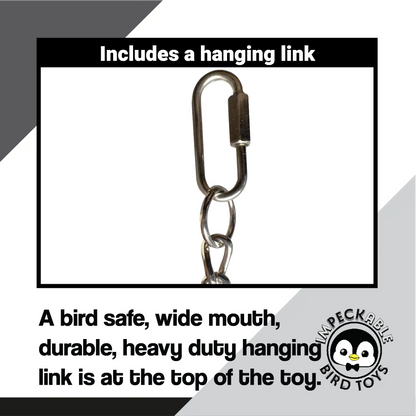 This toy is ideal for African Greys, Amazons, Cockatoos, and Macaws. Each piece is individually handcrafted in our Florida-based workshop, ensuring quality and safety you can trust for your feathered companion.