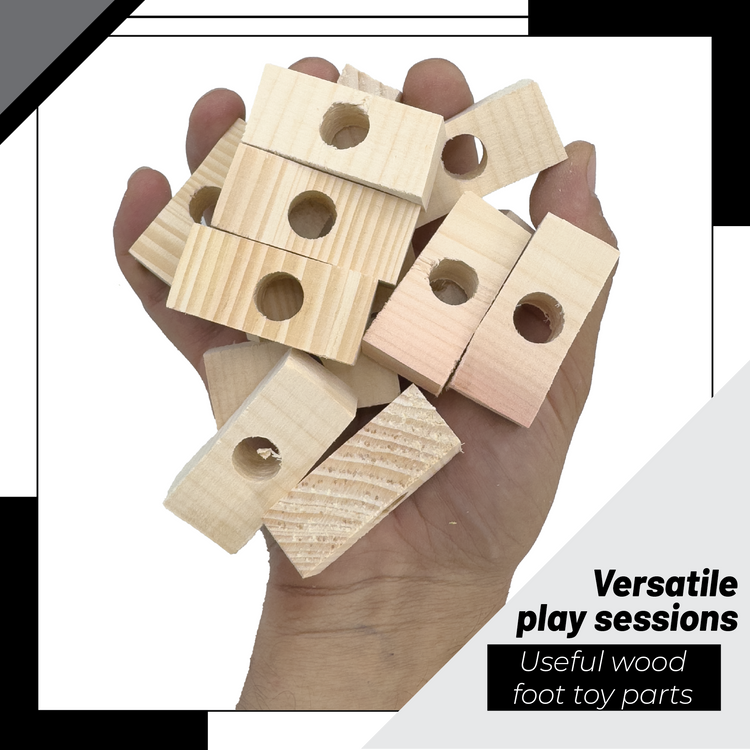 The design starts with the pre-drilled center hole, making each block ready for toy crafting. The unfinished, natural wood allows birds to safely grip and chew with ease. These blocks work well as foot toys in trays or as part of vertical hanging toys that encourage climbing and interaction.