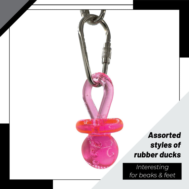 The 710 Pk12 Rainbow Pacifiers include 12 vibrant, translucent acrylic pacifiers, designed to captivate and entertain birds. Their bright colors and smooth surfaces make them perfect for pecking, grabbing, and exploring, stimulating natural curiosity and play. Lightweight yet durable, these pacifiers can be used as standalone foot toys or incorporated into DIY bird toy creations. Whether birds enjoy tossing, holding, or pulling them around, these colorful pacifiers provide endless interactive fun while promoting mental stimulation and enrichment.