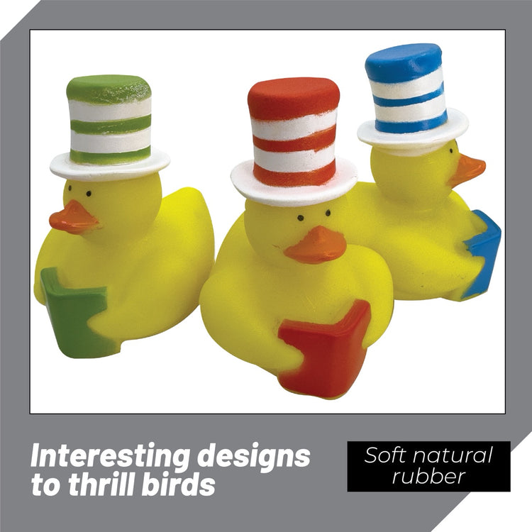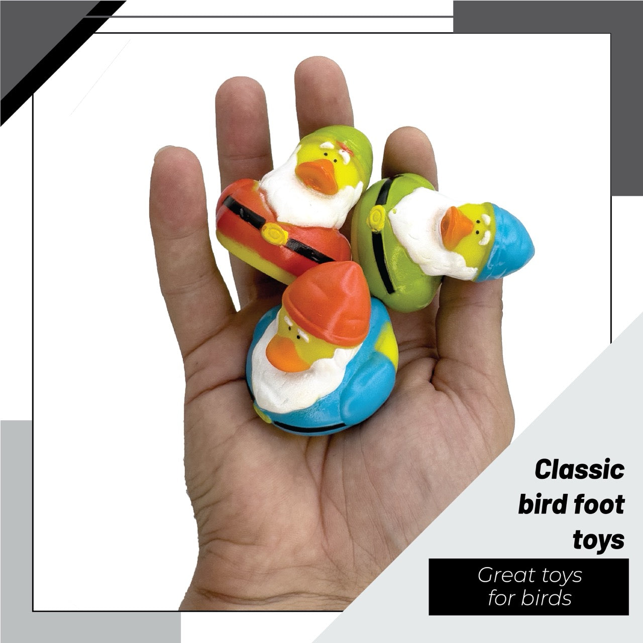 The 801 Pk3 Party Ducks are classic bird foot toys, designed to provide endless entertainment and enrichment. Made from durable, bird-safe rubber, these lightweight and easy-to-grip toys encourage birds to grasp, chew, and explore, supporting natural foraging instincts and active play. Their smooth texture and playful design make them ideal for beak and foot interaction, keeping birds mentally stimulated and physically engaged. Whether used for tossing, rolling, or chewing, these ducks bring fun and variety to any bird’s environment.